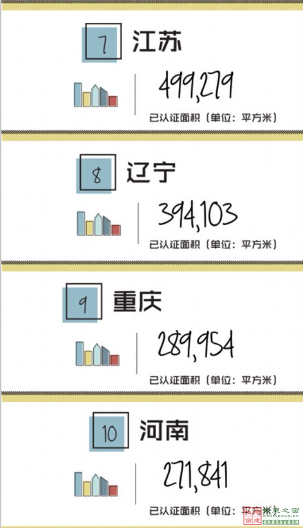這份LEED綠色建筑十大省市名單有著地理、人口和經濟多樣性,既有位于沿海一帶、經濟發達的上海、廣東、天津、浙江和江蘇,也有深處西部內陸的四川和重慶,政治文化中心北京赫然位列前三甲,東北地區的遼寧排名第八,華中地區河南也入選榜單。